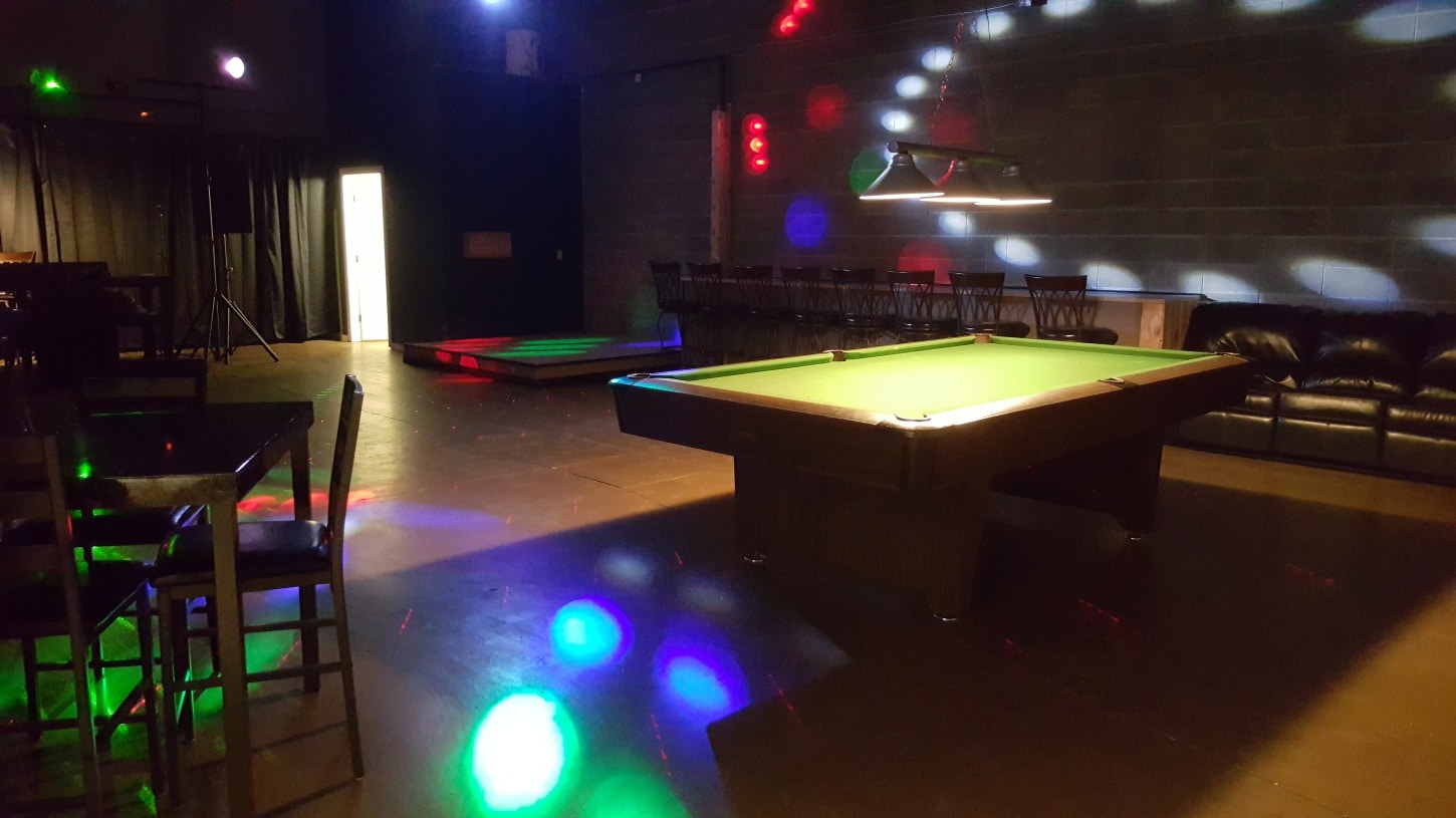 We offer a clean fresh atmosphere, a dance floor area with bars for chatting or sitting down both sides, a pool table, a bar area with a 16 ft table as well as tables and chairs to relax at. We supply ice, mix,water, coffee and snacks. We ask that when you come, if you want anything to drink (alcohol) that you please bring it with you as we do not sell/supply alcohol..