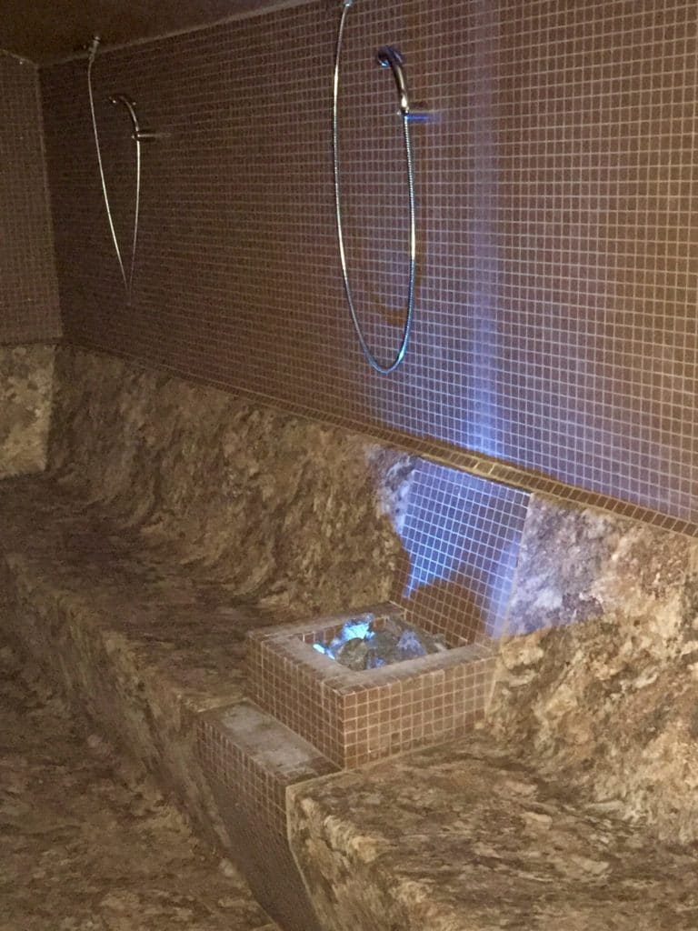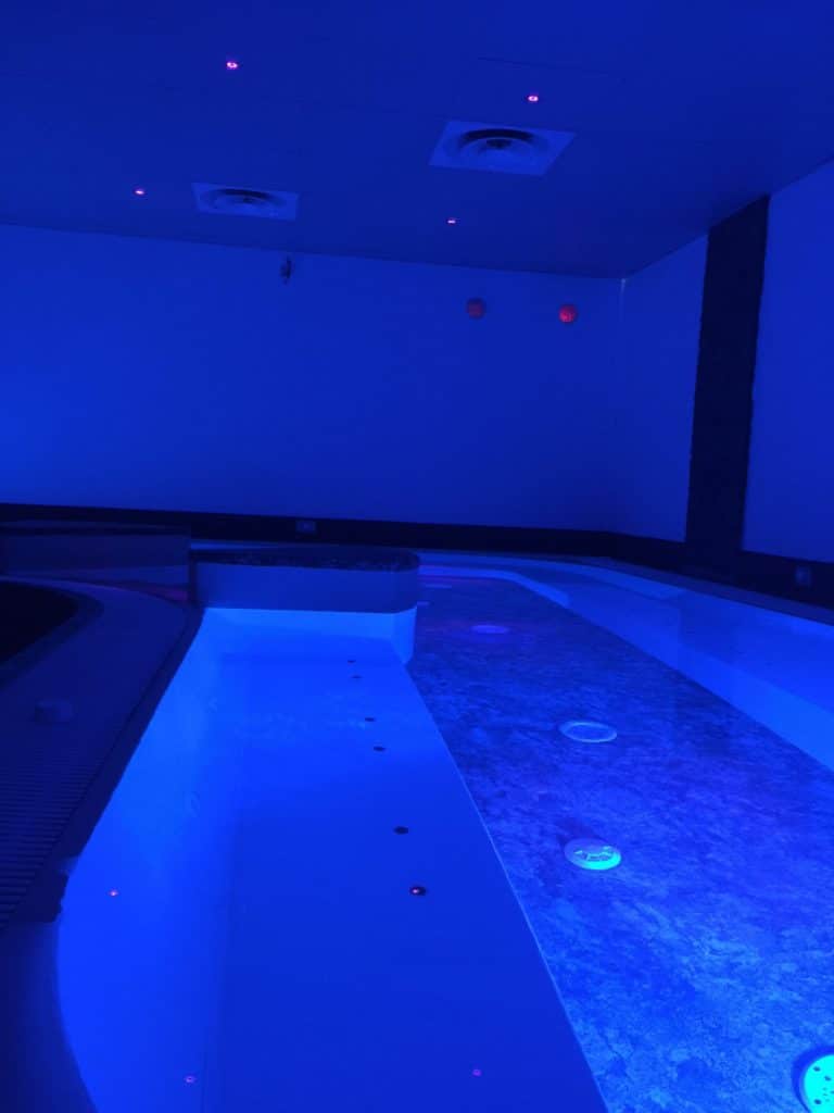 • Facilities: Bar, whirlpools, steam saunas, Turkish baths, outdoor solarium, and multiple lounge and private seating areas